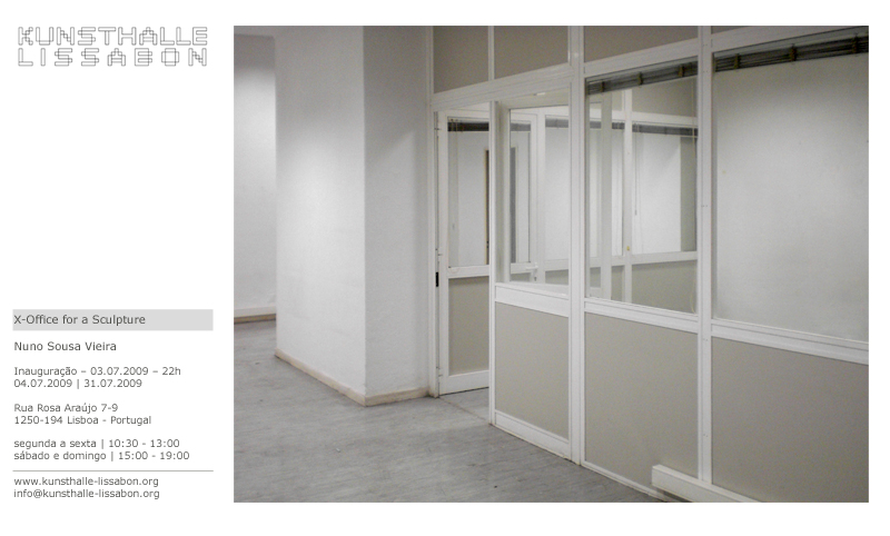 - Subject: <nettime-ann> X-office for a Sculpture - Nuno Sousa Vieira na Kunsthalle Lissabon - 03.07.2009 - 22h